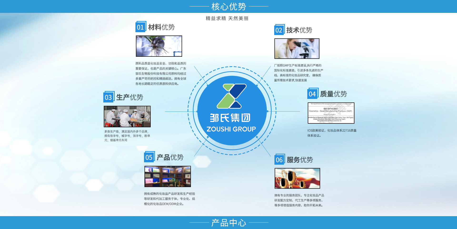 廣東鄒氏生物科技股份有限公司是一家集原料研制、配方開發(fā)、加工生產及配套性服務為一體的全球化化妝品OEM/ODM服務企業。鄒氏生物秉承“精益求精,天然美麗”的經營理念,始終孜孜不倦的在美業領域深耕,經過不斷發(fā)展完善與技術提升,在行業內頗具口碑和影響力。公司擁有雄厚的資金實力、先進的生產設備以及大批高精專的人才儲備,旨在打造一個純自主研發(fā),純自主生產以及管理的高科技日用美妝OEM/ODM品牌。 在延續(xù)高質量產品和服務的同時,鄒氏生物始終秉承著純粹的生產理念,在研發(fā)、生產、品控、營銷等多方面升級,配備雄厚的科研力量,引進先進生產設備,遵循嚴苛的品質管理標準,提供專業的全方位營銷服務,最大程度地實現資源整合,致力于成為世界優(yōu)秀化妝品工廠。為廣大品牌商以及消費市場輸送品質優(yōu)越、高效安全的日用化工、美容美妝、肌膚護理產品。